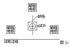 ②為了便于用千分尺測量漆層厚度,受千分尺結(jié)構(gòu)尺寸所限,缺陷刻制在試板近邊緣部分,因此所使用的四極旋轉(zhuǎn)磁場電磁軛只能用上三只磁極,第四極懸空。